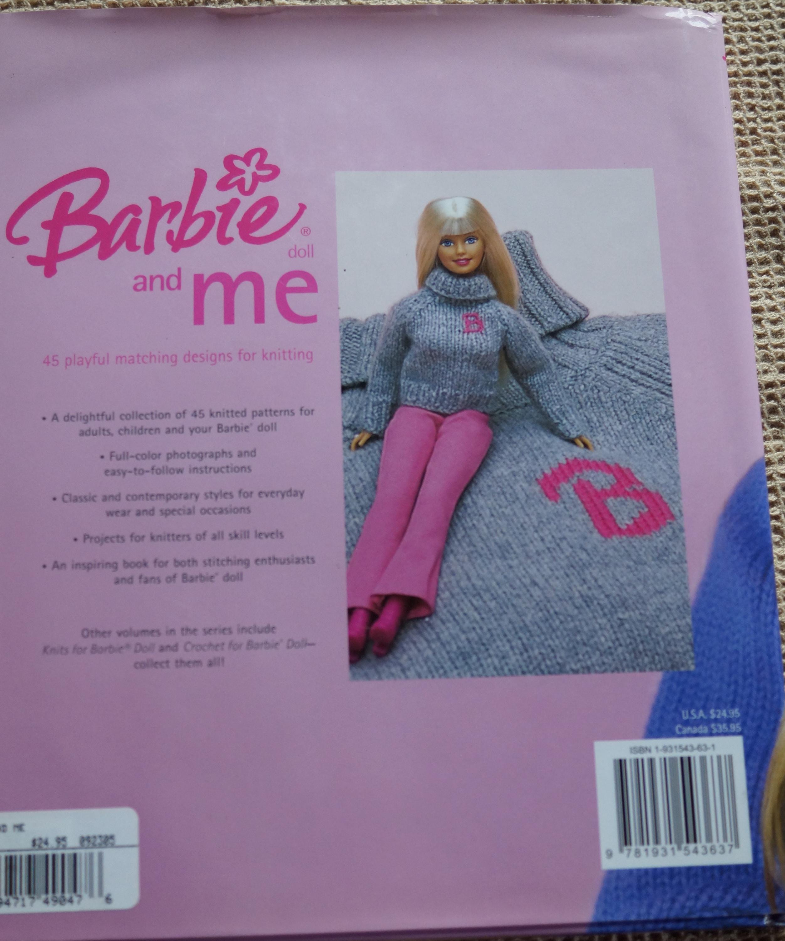Barbie Doll and Me book of child's matching knitting patterns by Nicky Epstein. 45Matching outfits. Published 2005 now out of print. 143 pages and in color. Condition is new but has some faint yellow spots in inside front cover.