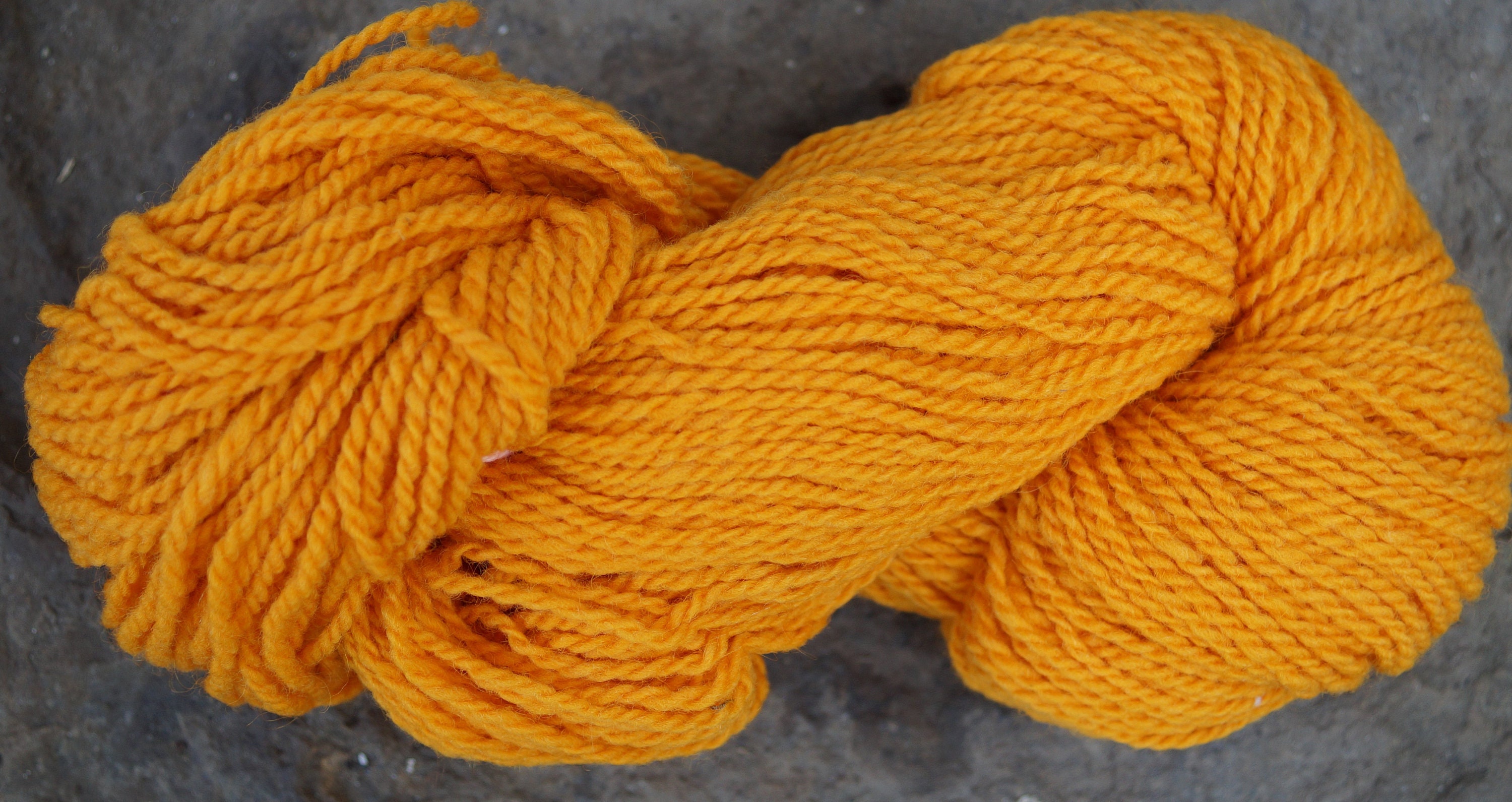 PUMPKIN kettle dyed 2 ply soft wool farm yarn. Several size skeins available from our USA farm. Gauge is about 5 sts/inch on size 7 kitting needles. FREE domestic shipping offer for orders of $35.00 or more from our store.