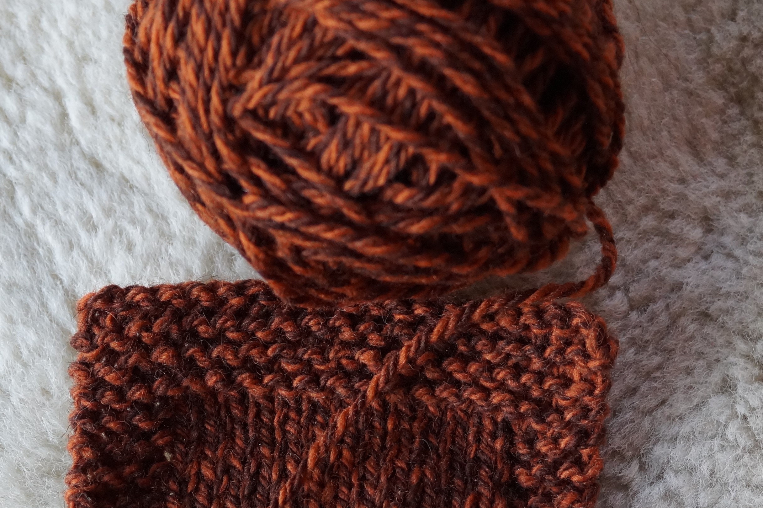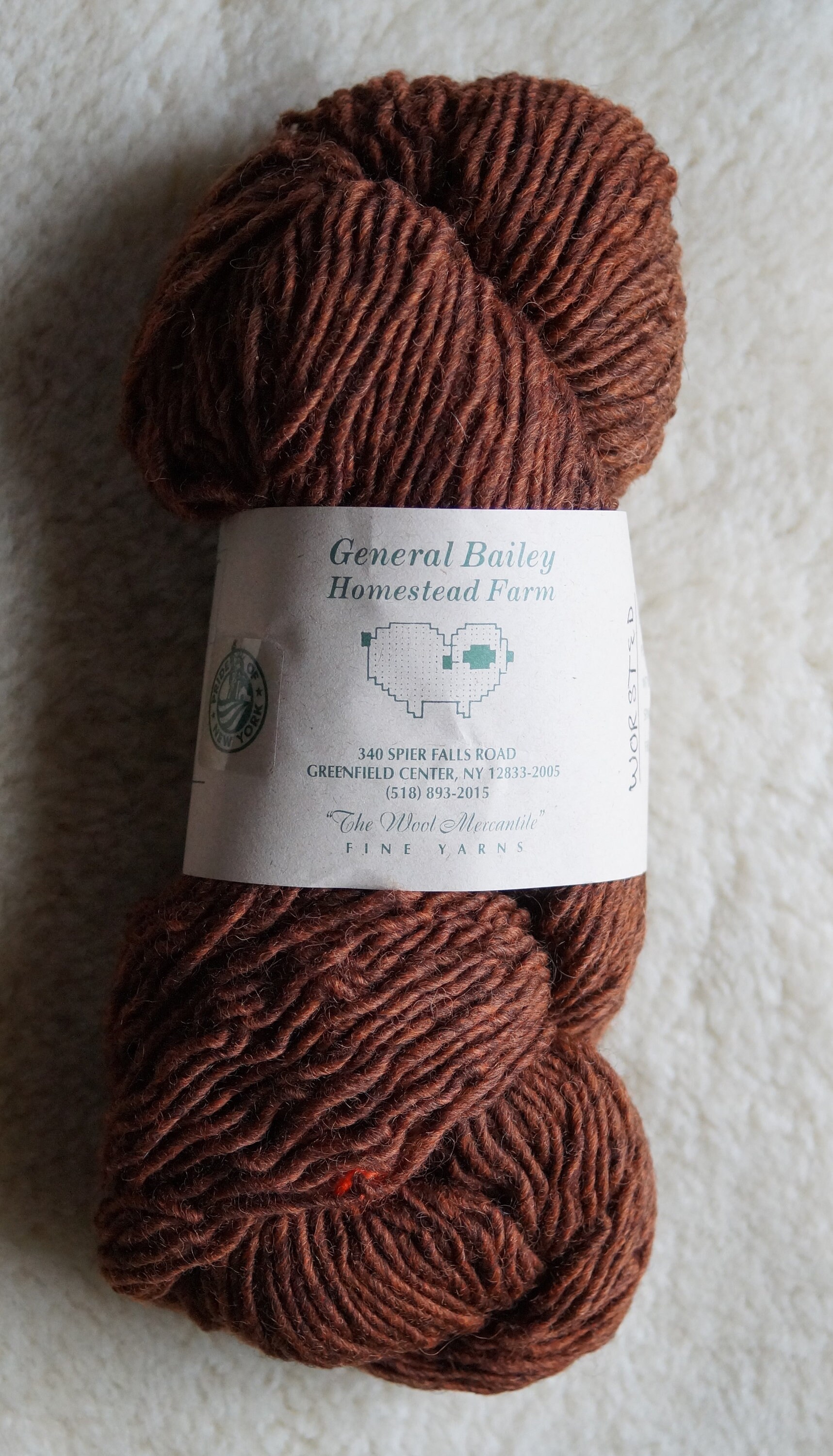 Autumn Rust double twist lopi style worsted weight wool kettle dyed yarn from our USA farm. Free shipping with order of $35.00 or more from our farm store. Wool is Romney, Merino and medium Tunis x wool. Very soft! Gauge is 5 sts/inch on size 7 needles and 4.5 sts using size 8 needles.